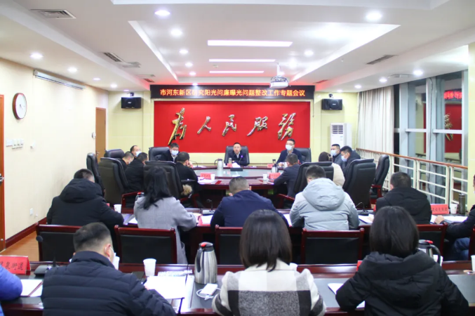 12月27日,大型调查类全媒体直播节目《阳光问廉·莲里同行》2021年第十四期曝光了市河东新区“‘细节’与‘形象’”问题。当天17:30,市河东新区党工委副书记、管委会主任杨东立即召集新区党政办、纪检监察室、党群工作部、工会、经合局、行政执法局、市场监管分局、公安分局、旅服中心、东涪公司等部门和灵泉街道办负责人召开专题会议,针对《阳光问廉》曝光问题进行深刻反思,深入剖析原因,研究整改措施,部署整改工作。新区党工委副书记杨明,新区党工委委员、管委会副主任唐钰玺参加会议。