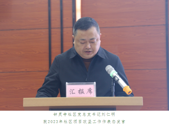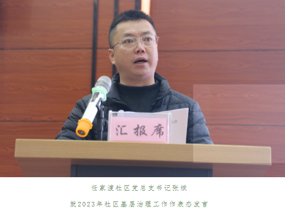 会上,钟灵寺社区和任家渡社区分别就2023年的项目攻坚和基层治理工作作了表态发言,他们说目标、讲做法、表决心,在会场上吹响了推进杨渡高质量发展的集结号。