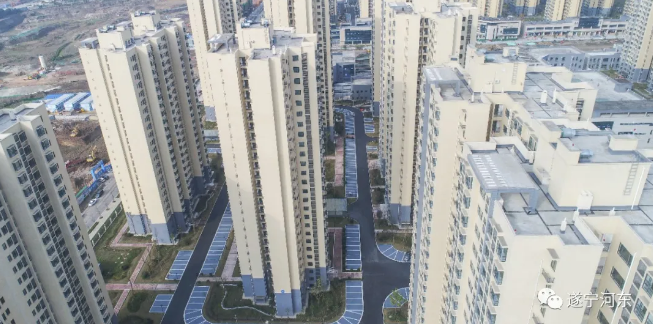 小区整体色彩搭配和谐且稳重大气,地面停车位规划合理划分整齐,小区绿化错落有致、相映成趣……这不是高端商品房,而是群众口中的“暖心房”——遂宁市河东新区最大棚户区项目任家渡城市组团。