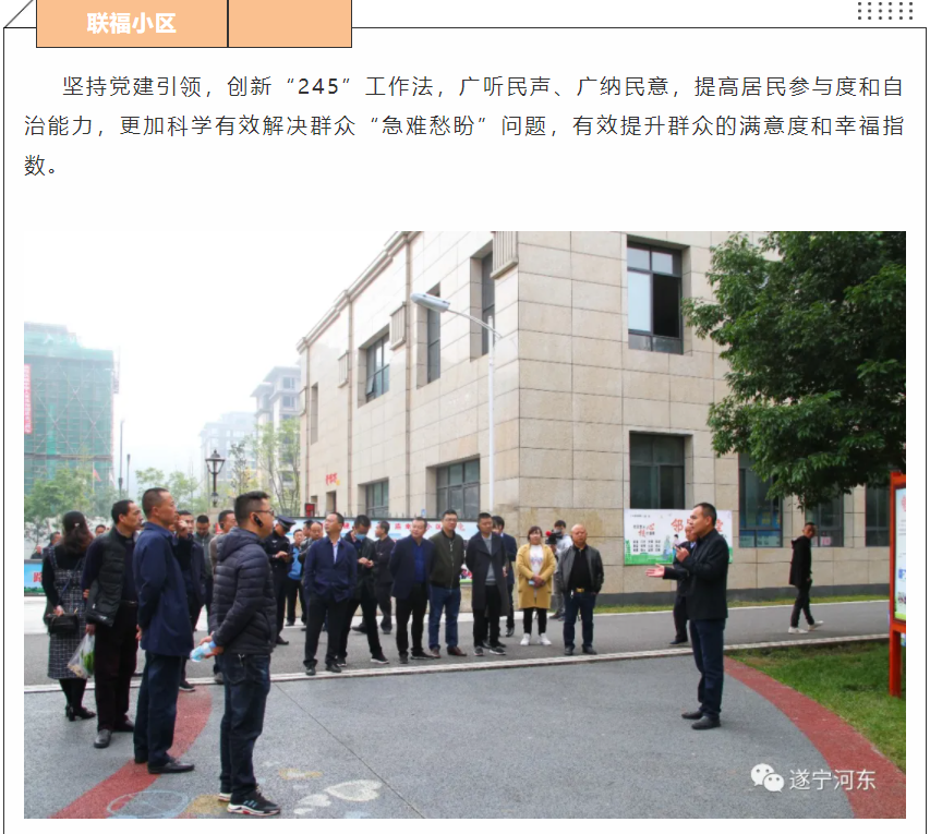 要坚持党建引领构建基层善治最优格局,重点完善街道、社区、小区三级架构和治理机制,进一步理顺街道管理体制,多措并举推进社区减负,不断完善党建引领小区治理机制。要聚焦幸福宜居打造平安河东最美“枫景”,各级各部门要主动作为,聚焦重点难点,解决平安建设和市域社会治理突出问题,为遂宁巩固“长安杯”成果和市域社会治理现代化试点工作合格城市贡献河东力量。要着眼长远发展选出社区“两委”最强班子,社区“两委”换届是岁末年初的一项抓基层打基础的重点工作,要及时掌握换届时间,合理设置职数,选好“两委”成员,平稳有序推进换届工作。