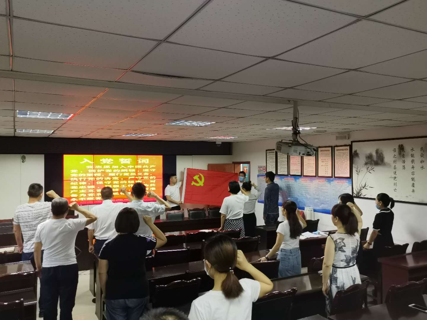 活动分为两部分,第一部分重温入党誓词、过政治生日,第二部分坚定信心决心、强化责任担当。