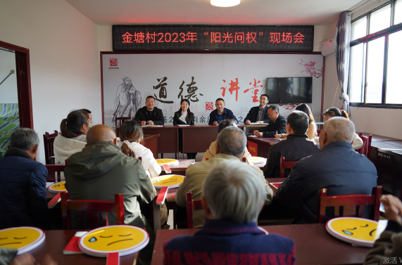 活动现场多名群众紧扣金塘村乡村振兴、民生实事、惠民惠农政策、基础设施建设、农业产业发展、乡村治理等方面的问题,就村级层面如何规范行使“微权力”进行现场问权。
