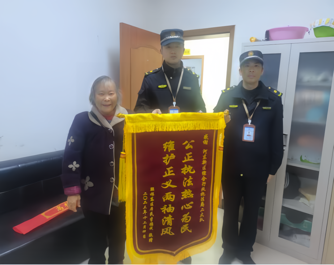 “感谢执法中队的干部,尽心尽力、想方设法的帮我解决了难题”。近日,慈音街道杰灵社区居民夏婆婆将一面写有“公正执法热心为民,维护正义两袖清风”的锦旗送到了综合行政执法局二大队一中队中队长吴晗的手中。据了解,11月下旬,大队接到群众来电诉求,反映每逢下雨天雨水就会顺着楼上搭建的彩钢棚流进自家厨房,严重影响其生活,因多次与邻居协商无果,希望执法队员能够协助解决。接到诉求后,中队立即安排了队员到现场了解了情况。
