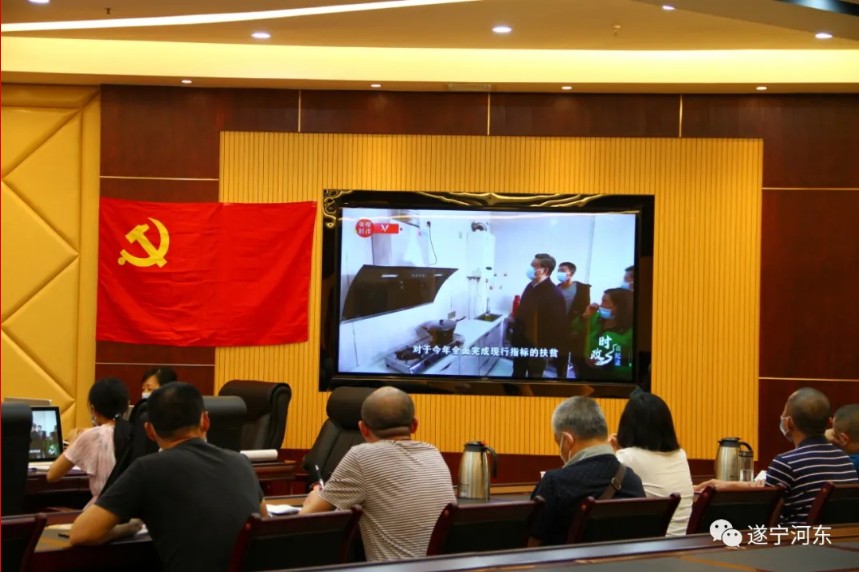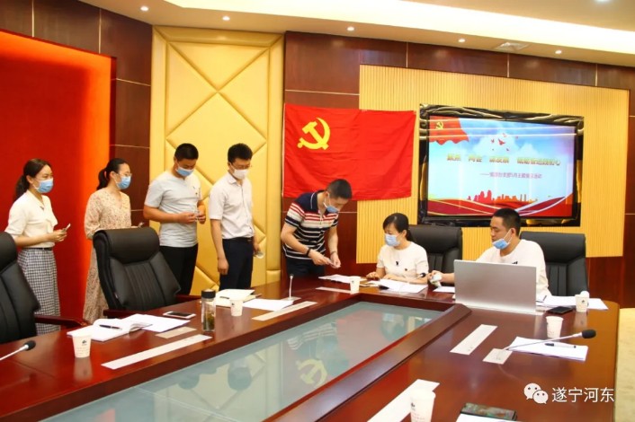5月22日下午,市河东新区党政办支部组织开展"聚焦‘两会'谋发展 砥砺奋进践初心"主题党日活动,会场悬挂党旗,全体党员佩戴党员徽章,活动气氛庄重简朴。