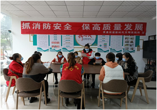 “现在是秋冬季节,天气干燥,容易引发火灾,在日常工作生活中,大家要提高消防安全意识,及时排查安全隐患,防患于未然”在香山路、灵应寺社区新时代文明实践站内志愿者和消防宣讲员正针对当前季节用火用电容易引发家庭火灾等情况,向社区干部和群众宣讲消防知识。