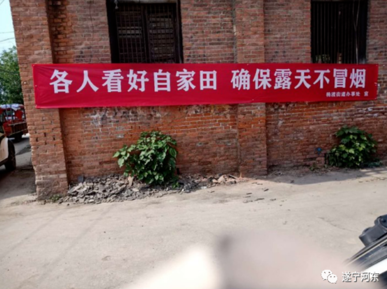 印制《关于严禁露天焚烧秸秆的通告》300份、制作秸秆禁烧宣传横幅30条粘贴悬挂宣传到位,通过召开党员、社区代表会多途径把禁烧工作同步宣传落实到位,在辖区内营造强大的禁烧氛围。