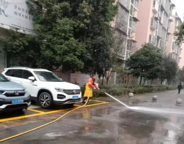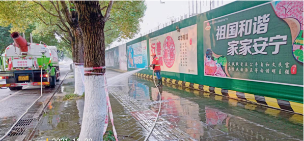 (2)提高机械冲洗频率。出动扫地车、冲洗车、洒水车等机械化设备13台,每天轮流对城区主次干道、人行道、环卫设施等进行清扫保洁,累计出动300余车次进行冲洗降尘,有力减少大气环境污染。