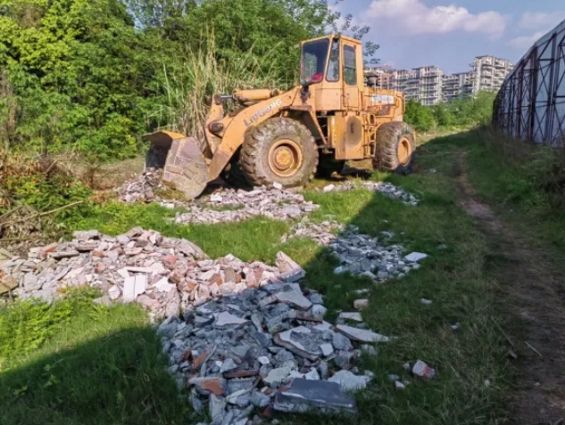 ▲杨渡街道组织工人对倾倒的建筑废渣进行清理