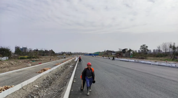 一走进项目建设现场,除了火热的建设场面,还有令人振奋的进度。主路刚铺上沥青,全新的路面, 给人感觉格外平整,心情格外舒畅。“在春节期间,该路段主路就已铺沥青,并作为临时通道,以方便群众出行。”家住保利江语城的市民唐明回老家蓬溪县吉祥镇走亲戚时,就提前感受了该路带来的便捷。他告诉记者,以前回老家必须要从东平大道,经永兴镇,路窄车又堵,至少要多耗时20分钟。