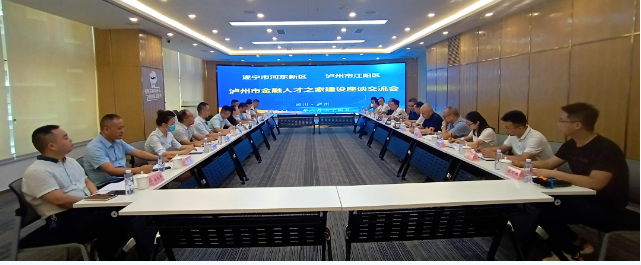 在泸州市江阳区,新区党政代表团考察了泸州市佳乐集团,参观了解佳乐集团商业发展及运营模式和酒城“融创港”——泸州市金融人才之家,听取金融人才之家管理运营情况介绍。在随后举行的座谈交流会上,罗太明介绍了泸州市金融人才之家的建设运营情况,双方进行了互动交流。金融人才之家对吸纳优秀金融人才出台了哪些优惠政策、金融人才之家如何抓好常态化管理、相关金融活动如何组织实施?如何发挥党建引领服务金融业态发展和金融人才创新创业作用?新区党政代表团成员纷纷就关心的问题提问,认真听取江阳区相关负责人介绍,双方还就更好发挥金融人才之家作用,推动商贸、金融发展,打造现代服务业高地进行交流。