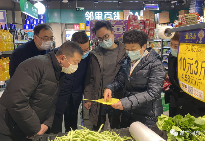 “冷冻食品是否按要求进行了核酸检测?”在谊品生鲜超市,刘娜对疫情防控、超市保供、消防设施配备等情况进行了详细了解,现场查看了冷冻产品核酸检测报告。她强调,要加强风险监测,落实冷链食品供应全流程溯源管理,确保冷链食品来源可查、去向可追、风险可控;要按照新区防控要求,全面落实“消毒、通风、测温、健康码”等防控措施。要加强肉类、蔬菜等重要储备商品管理,确保粮油肉蛋菜果奶等重要商品市场供应和价格平稳运行。
