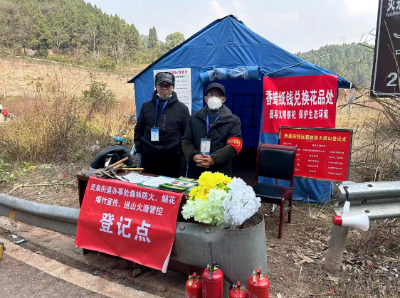 ▲值守森林防灭火点位,劝导群众集中祭祀、文明祭祀。