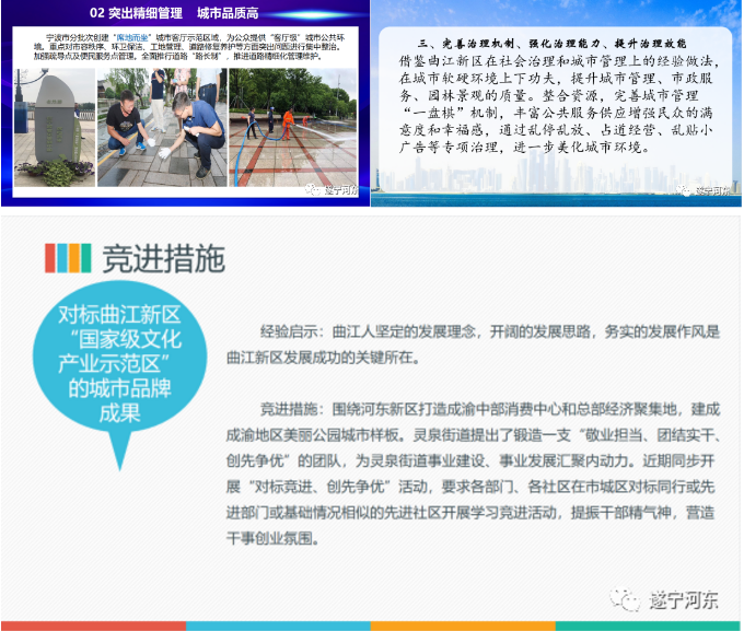 新区综合行政执法局、慈音街道办、灵泉街道办对标先进管理经验,进一步强化优势弥补短板。