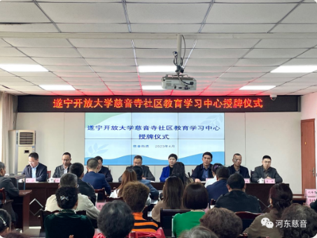 为深入学习贯彻党的二十大精神,推动社区教育纵深发展,进一步构建全民学习、终身学习体系,4月4日上午9时许,遂宁开放大学全市首个社区教育中心-慈音寺社区教育学习中心授牌仪式在慈音街道举行。