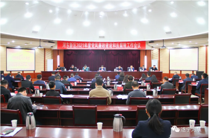 4月6日,市河东新区召开2021年党风廉政建设和反腐败工作会议,学习贯彻十九届中央纪委五次全会、省纪委十一届五次全会和市纪委七届六次全会精神,总结新区2020年党风廉政建设和反腐败工作,安排部署2021年工作任务。新区党工委书记刘娜出席会议并讲话,党工委副书记、管委会主任杨东等新区党工委、管委会班子成员参加会议。党工委副书记杨明主持会议。