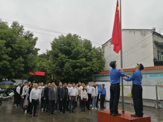 升旗仪式。科教园组织全体干部职工在旗山社区进行了一次庄严的升旗仪式。本次升旗仪式由科教园区党总支书记李绍俊主持,执法中队梁涛、冯宇担任升旗手,全体60余名干部职工参与升旗仪式,随着嘹亮的国歌声,国旗徐徐上升,全体干部职工行注目礼,安静、肃立。仪式结束后,李绍俊书记进行总结发言,表示广大干部职工要把满腔的爱国热情投入到实际工作当中,同心同德,励精图治,真抓实干。