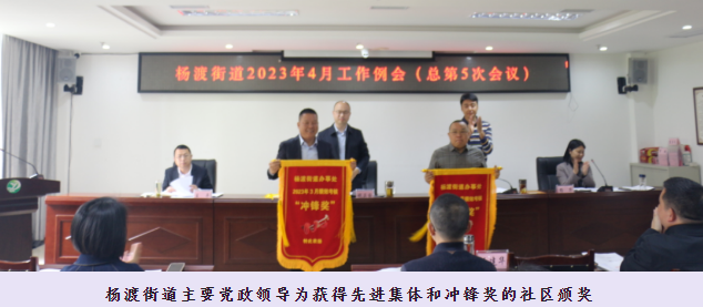 会议听取了街道各办公室(中心)、各社区一季度“开门红”工作完成情况汇报,通报了2023年3月考核结果和一季度重点项目攻坚进度,颁发了2023年第一季度项目攻坚先进集体、3月“冲锋奖”“蜗牛奖”旗帜,并就下一步要素保障、商圈建设、安全稳定、市域社会治理等工作进行了安排部署。