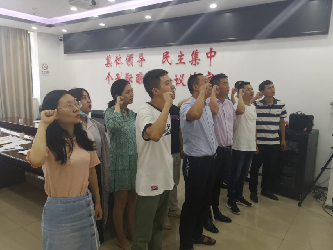 7月1日上午10点,在管委会二办公区217会议室,发改局党支部全体党员参加"庆祝建党99周年华诞"主题党日活动。一是为7月入党的5名同志发送"政治生日"祝福信息;二是支部书记陆国文同志主持发展预备党员,唐婷、蒲莹、冯刚三名同志作了思想汇报,支部党员大会进行了不记名投票表决,全票通过3名新同志为发展对象;三是陆国文同志带领发改局支部党员重温入党誓词,坚定理想信念。