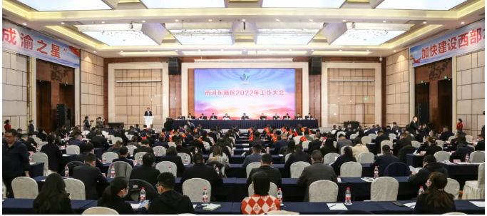 市委副秘书长、市档案局局长蒋中治出席会议。市河东新区党工委书记夏海荣总结2021年新区工作,安排部署2022年重点任务,市河东新区党工委副书记、管委会主任杨东主持会议,新区党工委、管委会班子成员,新区调研员、各局办、中心、派驻新区执法大队负责人、国有企业负责人、企业代表参加会议。
