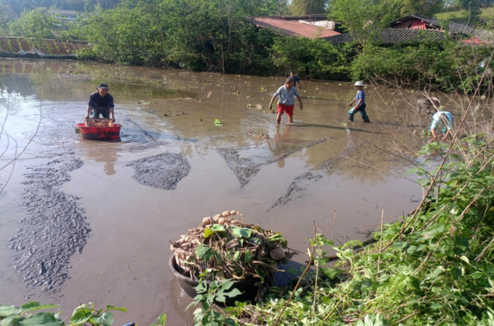 人工栽植,精细种养。从早上7点开始,在乘龙社区田间地头就能陆续看到农户们戴着草帽,躬身黄土的身影。10多名农户在地里来回穿梭播种玉米苗,有的挖土打窝,有的弯腰栽苗浇水,大家分工有序,一气呵成;在几公里外的鱼塘处,农户们弯腰下田,把藕芽朝上、藕头向外倾斜,置入三、四厘米的泥层田中,忙碌的身影绘就出耕地保护线上一幅幅美丽的画卷。在大家齐心协力、精心管护下,前期翻整过的撂荒耕地上,玉米、莲藕作物长势良好,为土地重新披上了新绿,而不久前,这里还是一片无人打理的荒地。