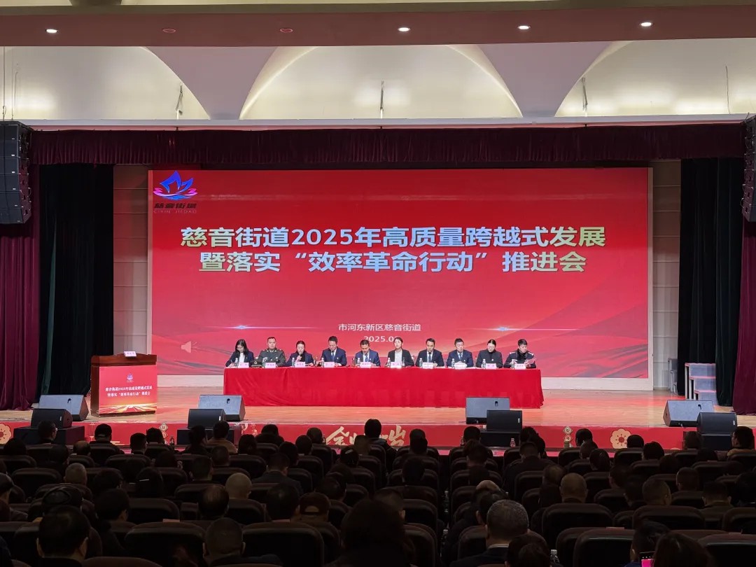 春潮奔涌战鼓急,策马扬鞭正当时。近日,慈音街道召开2025年高质量跨越式发展大会暨落实“效率革命行动”推进会。会议深入贯彻落实全市“效率革命行动”动员部署会和河东新区高质量跨越式发展暨项目攻坚誓师大会精神,总结2024年成绩,安排部署2025年工作任务,动员街道上下统一思想、凝心聚力,敢想敢干、善作善成,奋力推进慈音街道2025年各项工作全面升级、提档、加速。市河东新区党工委委员、纪工委书记蒋佰华出席会议并讲话,慈音街道全体干部,辖区各小区、两新党支部书记,辖区各小区业委会主任,受表彰先进集体和个人,共计300余人参加会议。