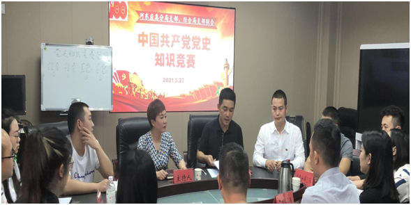 为结合庆祝建党一百周年和党史学习教育,5月27日,应急分局支部、经合局支部联合开展党史知识竞赛,旨在“知党史、忆初心、强信念”,在寓教于乐中让党史理论入脑入心,进一步丰富党员干部党史知识,提高党员党性修养。