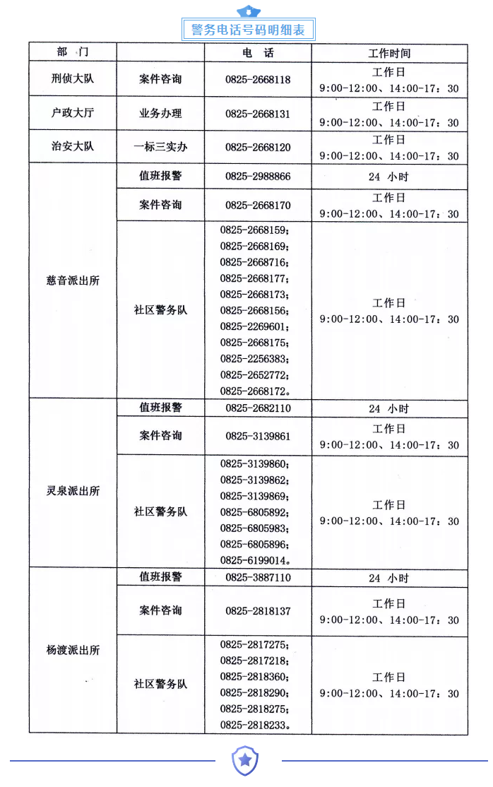 为提高执法办事效能,方便人民群众业务咨询、答疑解惑,现将河东新区公安分局相关部门电话公布如下: