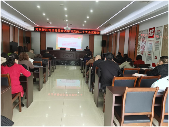 近日,河东司法分局立足司法行政职能,以培养“法律明白人”为抓手,坚持开展法治宣传、法律服务、法治文化建设,组织司法行政干警、新区法律顾问为辖区法律明白人开展多场培训,并深入宣讲党的二十大精神。
