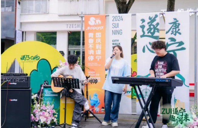 除了文创产品的展示,来自遂宁高校的大学生街头展演也是本次活动的重头戏。在成都的街头,青春洋溢的歌声和激情四溢的演奏,不仅展现了遂宁青年的才艺和风采,也传递了遂宁作为青年发展型城市的积极形象。遂宁市一直致力于促进青年的全面发展,激励青年担当作为,营造“遂宁对青年更友好、青年在遂宁更有为”的浓厚氛围。