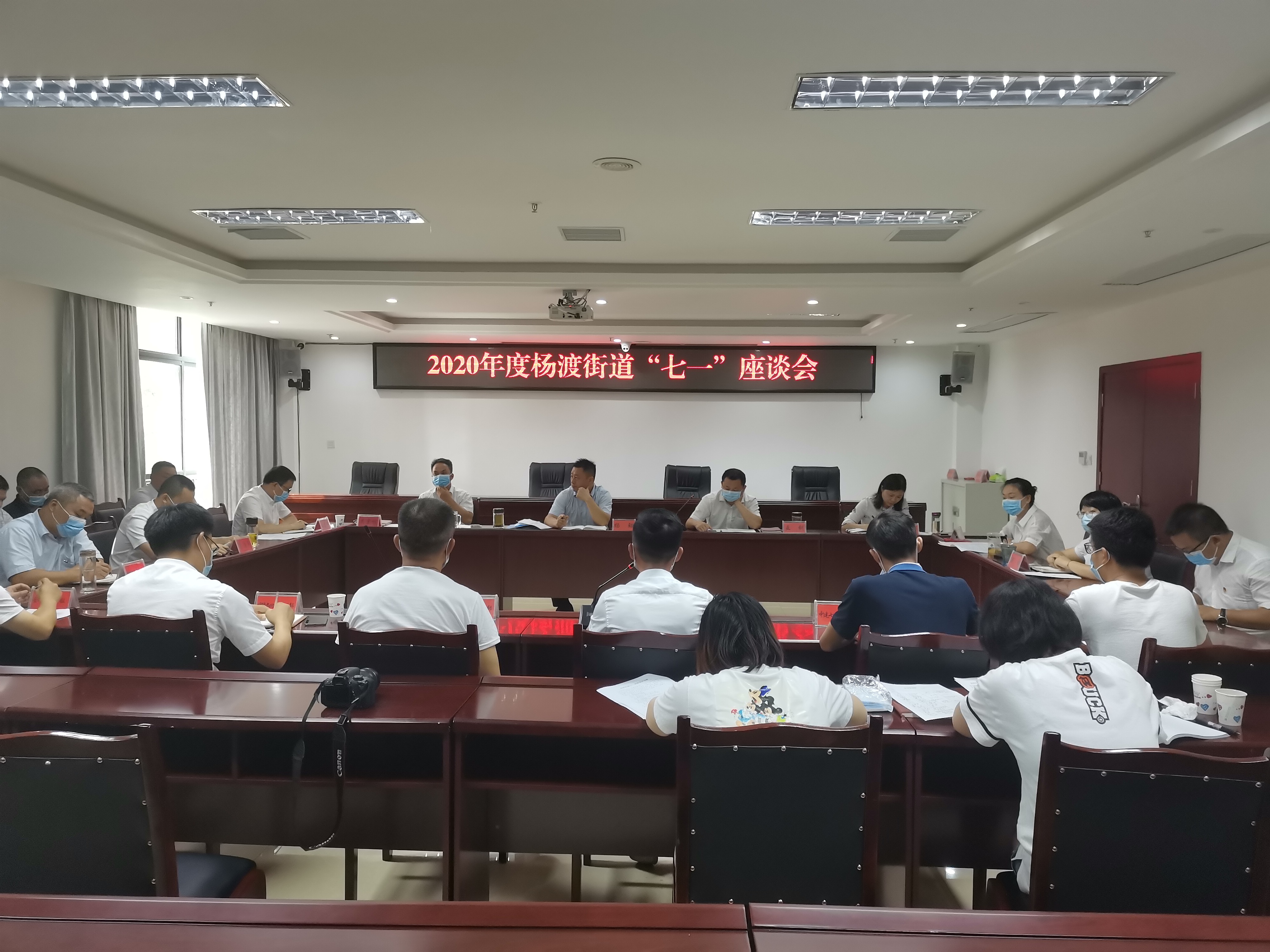 为进一步增强杨渡辖区各社区党支部、在建项目工地(临时)党支部的凝聚力、号召力,6月30日上午,杨渡街道党工委召开2020年度"七一"座谈会,邀请辖区在建项目工地(临时)党支部负责人、部分社区党支部书记共计23人参加会议。