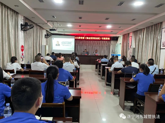 执法行为应该体现法治要求,映照文明规范。增强法治思维和专业理论素养是新时代执法队伍的一门“必修课”。综合行政执法局聚焦执法队伍专业能力和法治思维提升,邀请行业内的专家学者,为各大队队员开设《四川省城乡环境综合治理条例》《四川省物业管理条例》《四川省住房和城乡建设行政处罚计算基准》等法规及案例剖析系列课程,将执法要求具象化、标准化、口诀化,使之成为队员们的案头“工具书”,帮助队员将执法专业要求烂熟于心、践之于行。同时结合基层执法工作面临的新形势,在学习中融入规范化、专业化的相关执法经验和要领,并以老带新、骨干带新手的传帮带模式,促使新队员在执法实践中快速提升工作能力,传承优秀的执法经验,切实提高整体执法队伍的管理服务品质与执法效能。
