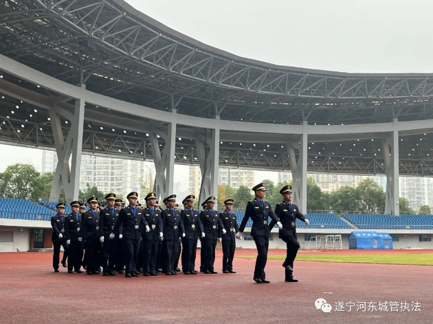 队列训练是综合行政执法局坚决贯彻“管理学部队”工作措施的重要举措,也是持续深化素质提升行动的一个缩影。在常态管理中,综合行政执法局通过严格落实“日考勤、周点名、月会操”制度、建立完善队伍管理规范、开展队容风纪督查等系列措施,进一步强化队伍作风养成,提升队伍外在形象,促进队伍规范化建设。