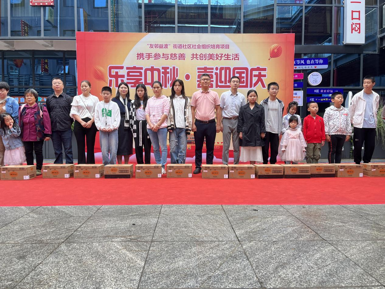 联慈善促发展,享和美于河东。为助推“五社联动”和社区慈善事业高质量发展,9月24日上午,在河东新区社会事业与群众工作局的指导下,河东新区杨渡街道办事处、河东新区杨渡社会组织联合会、杨渡街道任家渡社区在美宁食品街联合开展了“携手参与慈善·共创美好生活”——“乐享中秋·喜迎国庆”活动。