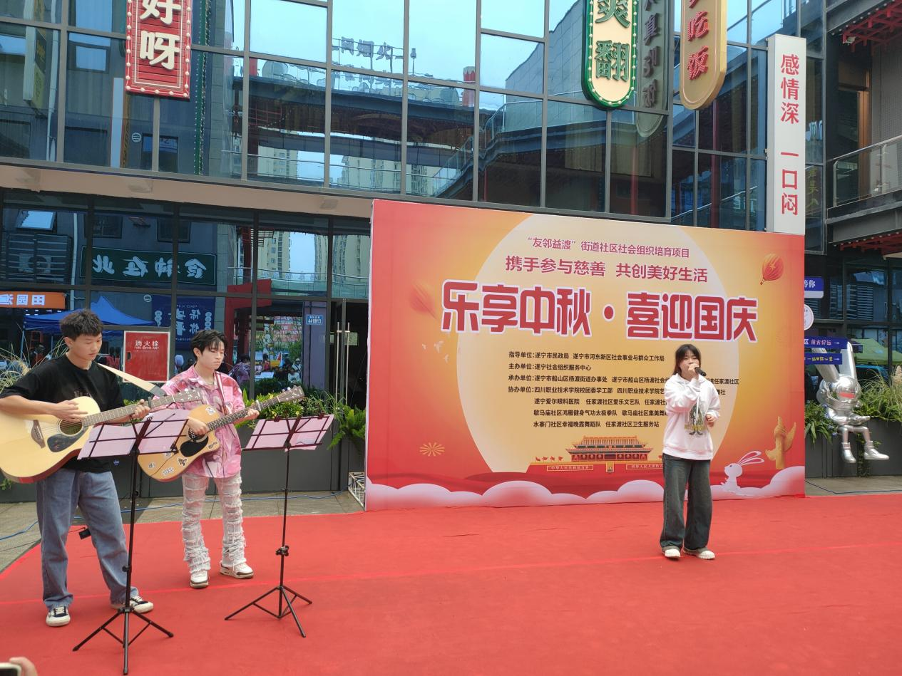 由遂宁市船山区杨渡社会组织联合会培育的12支社区社会组织队伍与四川职业技术学院大学生联合进行了舞蹈、歌唱、乐器演奏、诗歌朗诵等多种类型的文艺表演,应接不暇,精彩不断。