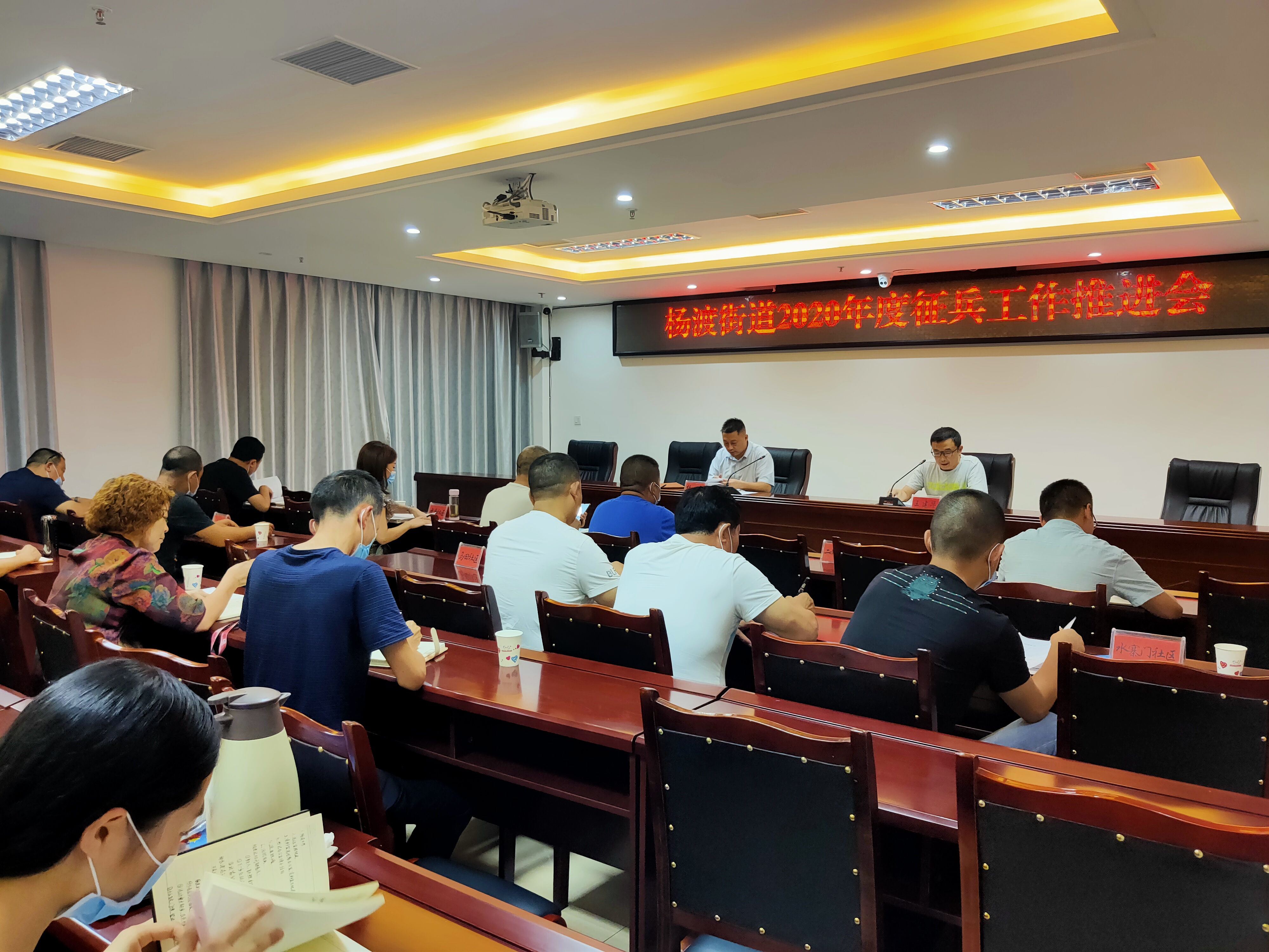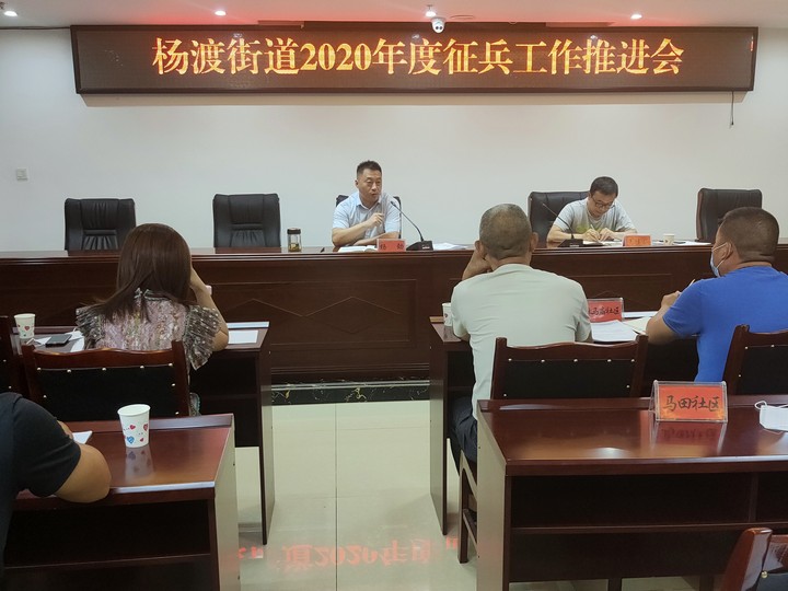 7月1日,杨渡街道2020年征兵工作推进会在杨渡街道办在机关二楼大会议召开,街道党工委书记杨劲出席并讲话,街道党工委委员、武装部长、办事处副主任王建华主持会议,各社区书记、主任共20余人参会。