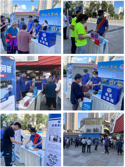 在万达广场2号门主会场,设立了法规咨询、群众意见征集、城市管理有奖知识问答以及政策法规宣传等多个互动项目,工作人员通过向市民宣讲解读市容市貌、环境保护、犬只管理等城市管理方面法律法规,现场接受群众咨询建议和举报投诉,让更多市民群众参与、了解城市管理的目的和意义,增强全民法治观念,深化法治城管建设。