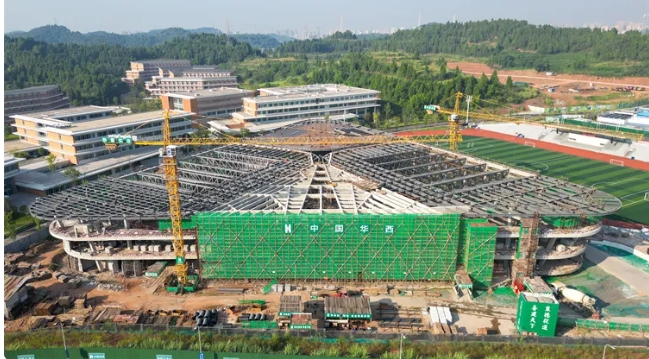 “目前,体育馆已全面进入主体结构收尾阶段,预计9月初全面完成主体结构的施工,接下来将全力抢抓设备安装和装饰装修的施工,预计明年5月初全面完成体育馆的建设,并移交校方使用。”四川师范大学遂宁校区项目现场代表袁敏介绍,四川师范大学遂宁校区项目二期占地26万平方米,是今年省级重点项目。该校区的体育馆建筑面积为27152.74平方米,设置有游泳、篮球、综合训练等场馆。