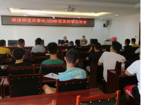 为贯彻执行好船山区人武部2020年度征兵初审工作会议部署,杨渡街道办高度重视,精心组织、科学谋划,7月28日上午,组织辖区10个社区44名预征对象在杨渡街道二楼大会议室召开征兵初审工作会。