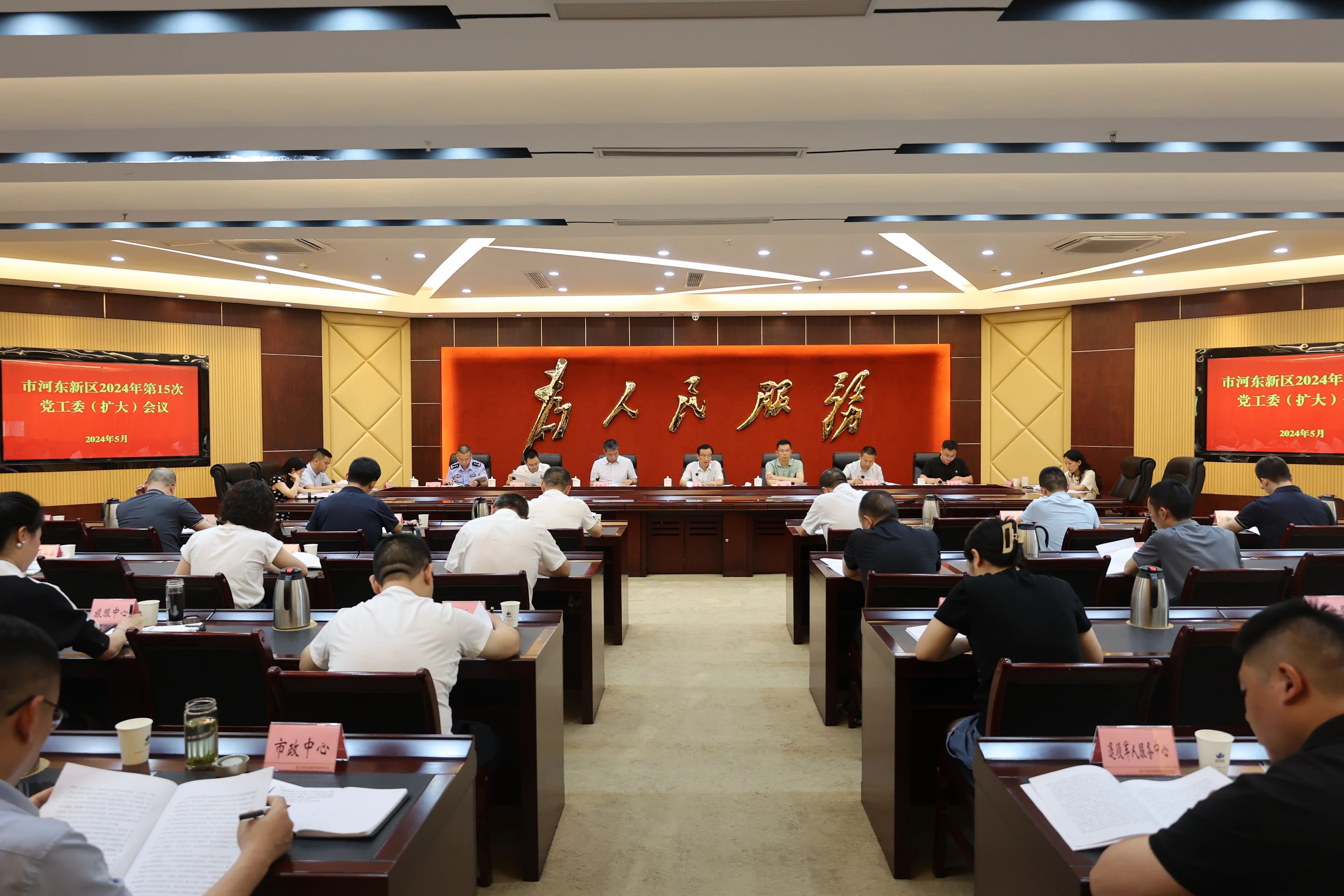 5月24日,市河东新区2024年第15次党工委(扩大)会议召开,贯彻习近平总书记重要指示精神,传达学习近期中省市重要文会精神,安排部署近期重点工作。市河东新区党工委书记潘化荣主持会议并讲话,强调要深入学习贯彻习近平总书记重要文章、重要指示精神,围绕培育和发展新质生产力、项目建设、民生保障、安全生产等重点领域,锚定发展目标任务,以高质量改革推进高质量发展,不断为新区经济社会发展增动力、添活力。市河东新区党工委副书记、管委会主任张宽,市河东新区党工委副书记唐钰玺等新区领导参加会议。