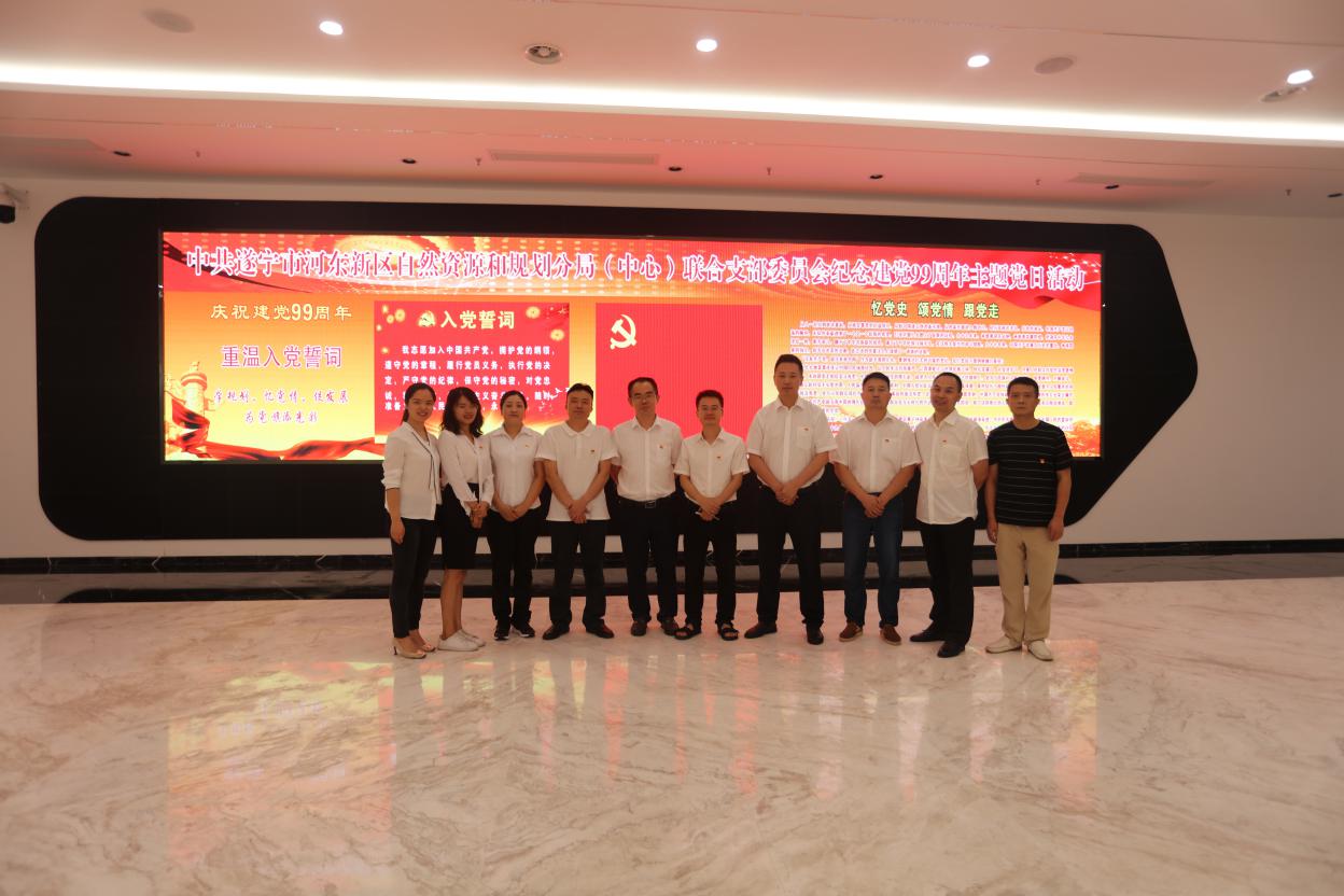 为庆祝中国共产党建党99周年,进一步继承和发扬党的光荣传统和优良作风,增强支部党员的凝聚力和战斗力,7月1日,中共遂宁市河东新区自然资源和规划分局(中心)联合支部委员会在河东规划展览馆开展"学规划、忆党情、促发展"主题党日活动。