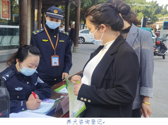 整治行动由新区综合行政执法局、公安分局、发展改革局等相关职能部门组成联合攻坚小组。一是利用官方微信、微博、朋友圈线上扩大受众面,普及犬只管理相关政策规定及养犬注意事项,提高群众文明养犬认识。同时,在广灵路口设点宣传、执法车辆流动宣传扩大线下覆盖面,提醒养犬居民及时为爱犬注射疫苗和体检,携带犬只外出束以犬链,及时自觉清理犬只排泄物等,达到更好的犬只管理宣传辐射效果。二是在派出所、执法大队设置养犬咨询登记点,爱犬人士可就近选择便民点进行养犬事项咨询、犬只办证登记等。据不完全统计,该项活动开展以来,养犬咨询、登记达到200余人次。三是深入犬患问题较为突出区域开展执法检查,重点对溜狗不牵绳、犬只未办证、饲养禁养犬等违规行为进行治理,依法查处不文明养犬行为。四是邀请文明养犬市民代表担任推广大使,携爱犬走进小区楼宇分享科学养犬知识、养犬故事,更是献上默契十足的表演,这种接地气、有感染力的“花式”宣传引发了市民强烈共鸣,成为进一步提升养犬行为文明指数的有效途径。