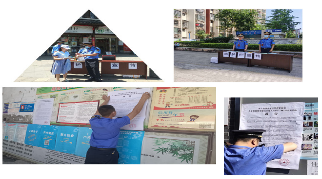 在各居民小区公示栏张贴《遂宁市河东新区管理委员会关于加强城市建成区建筑防护栏(网)综合整治的通告》,在广灵路口、灵应寺临时便民服务点、万达周边等人流量相对集中区域,设置集中宣传活动点,通过发放宣传单、现场解答等方式,向市民传达整治工作政策措施及方案细则,公布各阶段治理工作动态,同时,经我局执法人员走访摸排,建立了防护栏(网)整治任务台账,既为后期工作的开展提供了数据支撑,又进一步扩大了宣传辐射面。