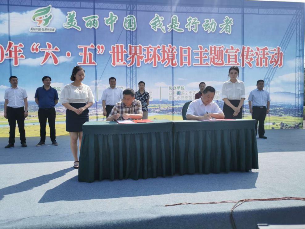 本次活动紧扣"美丽中国,我是行动者"宣传主题,以遂潼两地一体化发展新的历史机遇期为契机,创新宣传方式,由重庆潼南区生态环境局代表宣读,两地领导共同签署《遂宁—潼南生态环境保护联合宣言》。宣言达成共识,共同推动生态环境保护一体化;共同筑牢长江上游重要生态屏障;共同开展生态环境保护联防联控联治。
