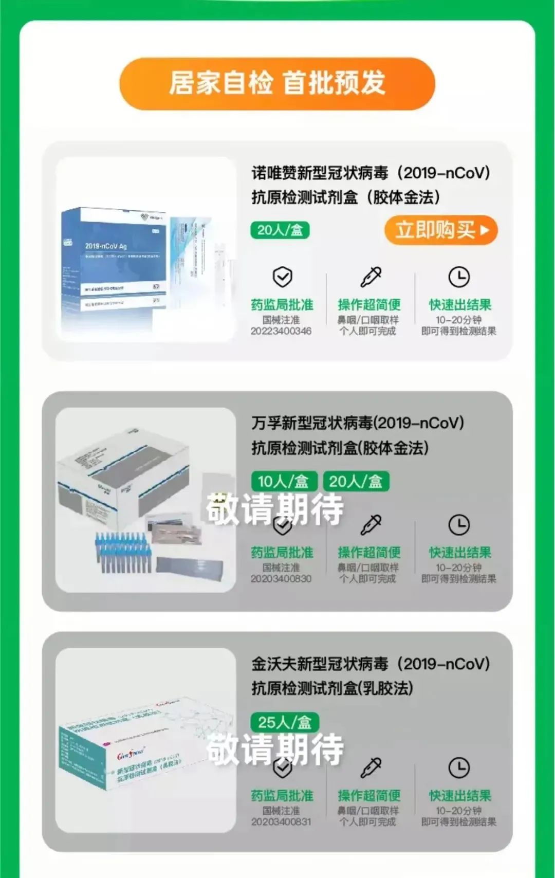 新冠抗原自测试剂盒产品