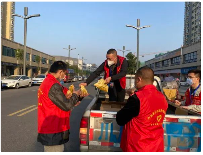 杨渡街道任家渡社区防疫点的志愿者罗强一边吃着包子,一边说:“包子还热乎着,谢谢你们,我们的工作能够得到大家的支持与关心,很感动。”