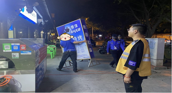 整治过程中,执法人员本着“教育为主,处罚为辅”的原则,采取宣传劝导和严格执法相结合的方式开展集中整治。针对占道经营、灯箱广告摆放无序的情况,帮助他们对出店、占道物品进行清理规范,针对油烟扰民、噪音扰民等违规行为,当场责令商家立即整改,并监督到位,从而营造整洁、有序的辖区市容环境,共计清理小广告24处、店外经营24户,流动摊贩16起、违规落地招牌13块。