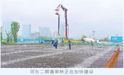 在河东二期永盛湖周边桥梁(1号桥蓬莱桥)建设现场,记者看到,工人们正抢抓关键节点,加紧施工,确保桥梁建设如期完成。现场负责人梁中未表示:“目前蓬莱桥正在实施的是右幅的箱料混凝土线浇以及左幅钢筋绑扎,预计在4月底或者5月初进行混凝土浇筑,争取在6月初完成主体建设。”