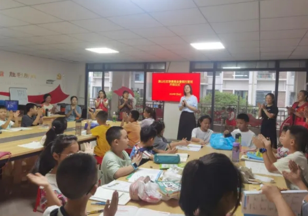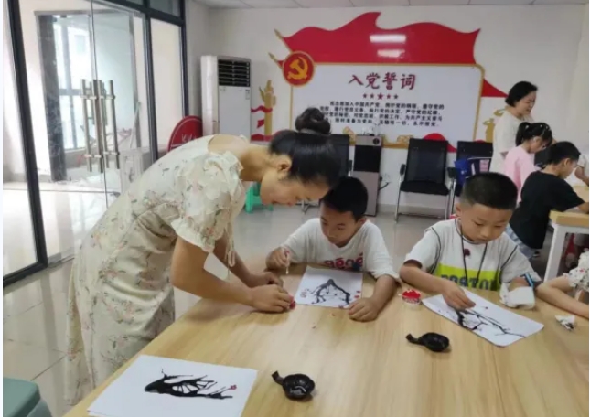 科教园区党总支委员、管理办相关负责人参加了开班仪式并讲话,就暑托班特色主题活动向孩子们进行介绍,期待以多元化的体验让孩子们在暑托班中有所收获、实现自我提升。同时,将孩子们安全放在首位,为孩子创造一个良好的学习环境。“暑托班”采用“半日托”的模式,课程安排分为两部分,一部分是课业辅导,由志愿者照看辅导暑期作业;另一部分是主题活动板块,定期安排绘制吹墨画、制作手工花束、制作手工漆扇、学习五禽戏和八段锦等不同的体验活动,丰富儿童的暑期生活。