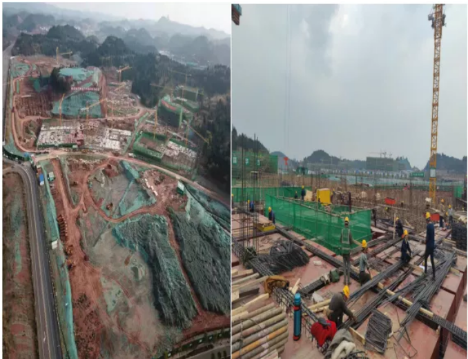 在四川师范大学乡村振兴学院项目建设现场,机械轰鸣、人头攒动,建设场面如火如荼,记者看到十余台塔吊同时作业,施工人员在各自岗位不停忙碌,紧锣密鼓地推进着工程进度。据悉自2月7日项目复工以来,目前施工人员超1200人,返岗率达到100%,目前桩基施工已全面完成,项目一期建筑正在进行主体施工,1、9号宿舍楼已封顶。预计3月中旬,项目一期建筑全部封顶;6月底,项目一期装饰装修全面完成;8月初,项目一期场平、园林绿化施工完成100%;8月中旬,项目一期全面竣工,达到招生条件。施工方主管人员表示,下一阶段将继续高标准、高质量、高效率地精心组织、精心施工、精心管理、严格把好建设工程进度关、质量关。