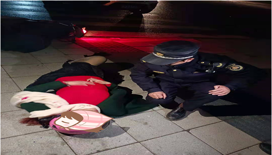 考虑到夜间天寒,需要立即救助。工作人员唐建经过多次呼喊,该女士才有所清醒,工作人员询问其情况,但该女士情绪低落。于是,工作人员将该女士搀扶至辖区大队办公室休息并递上热水。随后向新区杨渡派出所求助,请求 杨渡派出所帮助联系该女士的家人,由家人护送其回家。